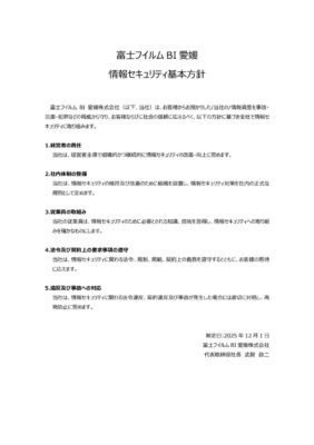我々、富士フイルムBI愛媛株式会社は富士フイルムビジネスイノベーションジャパン株式会社の関連会社として2021年4月1日に発足スタート致しました。BIはビジネスイノベーションの略語で、お客さまのビジネスに革新をもたらし、真のビジネスパートナーと呼ばれる存在でありたいという意志が込められています。